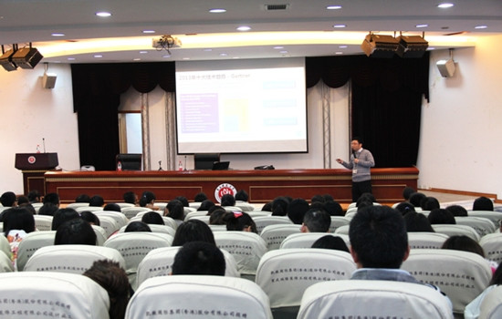 为加强2013级新生对IT行业的了解,11月21日下午14:30,惠普(重庆)有限责任公司测试中心部门经理汪维先生应邀来到我校弘德楼凯撒报告厅,开展了题为“从新兴技术对IT的影响到个人成长之路”的专题讲座。本次讲座由91自拍 党总支副书记杨宇主持,2013级辅导员朱嘉洁及全体2013级新生们参加。