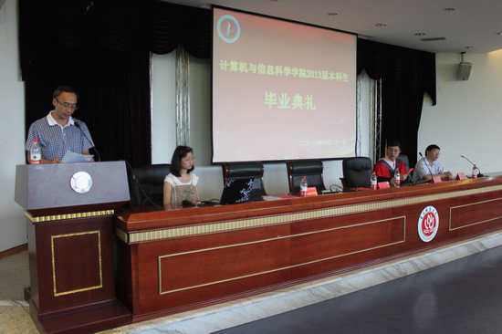 党总支书记刘军,副院长魏延,办公室主任罗世祥,团总支副书记张敬,教师代表李明、陈勇、蕾蕾、龚伟、陈娟娟等,2013届全体毕业生参加本次典礼,典礼由计信学院党总支副书记杨宇主持。