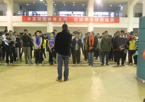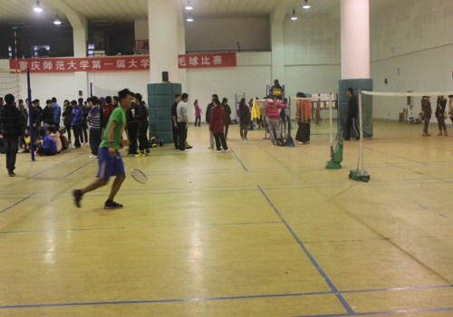 为丰富校园生活,增进同学之间交流,增强大学生的体质,2012年12月8日上午9:00,我校举办为期两天的“重庆师范大学第一届三好杯大学生羽毛球大赛”在羽毛球馆火热开幕。据悉,大赛共设定男女混合双打、男子双打、女子双打、男子单打、女子单打五个项目,比赛结果将产生团体奖和个人奖,获奖者将获得奖牌、荣誉证书及相应奖金。本次大赛由我校各个学院派代表参加,体育学院院长出席开幕式并致开幕词。
