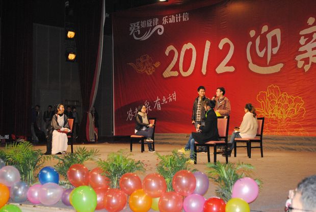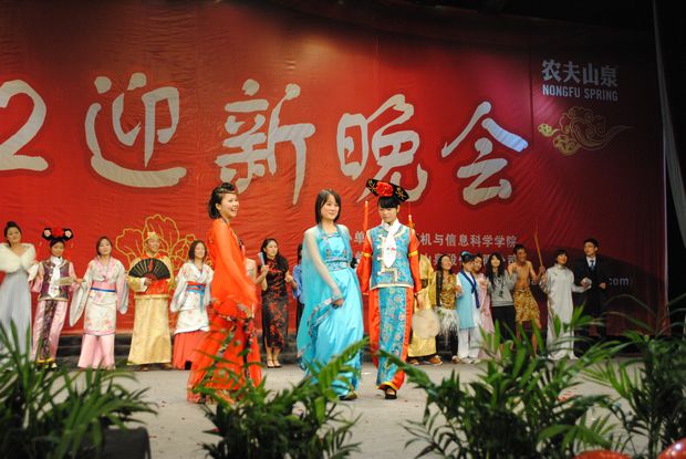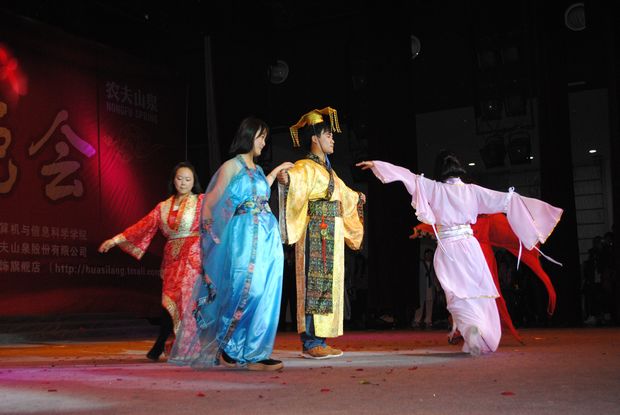 看,场上男男女女用那轻盈而娴熟的节奏,动感而激情的舞姿正在演绎着恰恰《Hole in my heart》,紧随其后的歌曲串烧《如果爱》和教师节目《格桑花》将晚会气氛推到高潮。扣人心弦的魔术《预言》,充满异域风情的《新疆舞》和古典舞《梦醉潇湘》,耐人深省的情景剧《丁香花》、《历史的天空》无一不感染在场的每一位观众,牵动着每一颗观众的心。嘻哈街舞串烧《舞客联盟》,霸气逼人rap《平民百万歌星》,优雅清新乐器合奏曲《burning》展示了年轻一代青春的曼妙多彩和无限热情,第四届团总支学生会的一场《时空之秀》更是呈现了集体创作的精美,形式新颖、妙趣横生、令人称绝。更有趣的是融合了小品和《江南style》的《计信好声音》令广大师生捧腹大笑,台下掌声阵阵,欢呼声一浪高过一浪。值得一提的是,晚会还特别设置了与观众游戏互动和微博互动的环节,同学们积极参与,充分体现了91自拍
