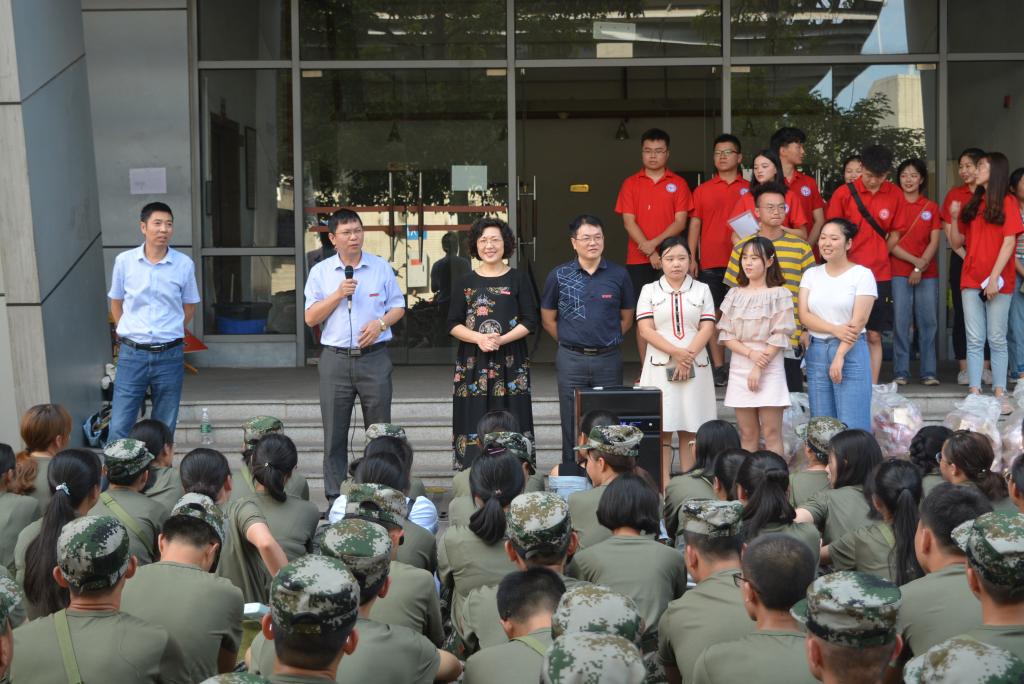 党委书记陈兰、院长魏延、党委副书记何东、副院长李世宏、团总支书记钟华及19级辅导员孙柳艳、魏僚带领团学会部分成员为烈日下的新生们送去温暖的慰问。