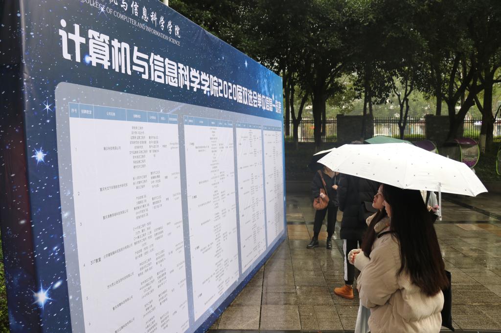 应届毕业生及大三学生纷纷提前到场,了解单位信息、收集就业要求,并进行单位面试。91自拍
