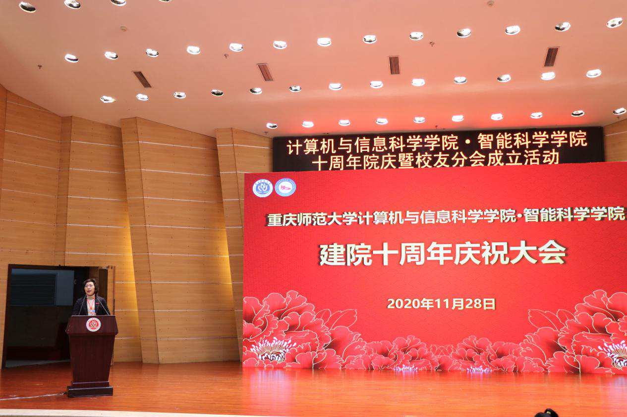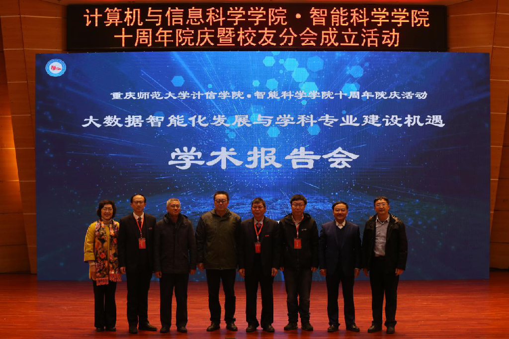 上午,计信学院举行了计信学院建院十周年庆祝大会,出席会议的领导和嘉宾有重庆师范大学纪委书记肖应红教授,中国人工智能学会副理事长、重庆人工智能学会理事长、重庆邮电大学副校长王国胤教授,全国高等学校计算机教育研究会师范教育分会副理事长、南京师范大学计算机与电子信息学院院长吉根林教授、副院长蔡继明教授,重庆计算机学会秘书长、重庆大学曾一教授,中国计算机学会重庆分部主席、重庆大学大数据与软件学院党委书记文俊浩教授,重庆交通大学、重庆工商大学、重庆三峡学院等计算机学院领导。还有企业界嘉宾腾讯教育、重庆致业源科技有限公司、中渝智能设备(重庆)有限公司、重庆门罗机器人科技有限公司代表。计信学院成立时相关联的三个学院的领导数学科学学院党委书记杨光平、物理与电子工程学院党委书记胡先成、经济与管理学院副院长喻科以及历任学院领导刘军、马燕、李月臣、李晓燕、杨宇、杨晓红和130余名校友、学院退休同志、全体教师和部分学生代表出席了会议。