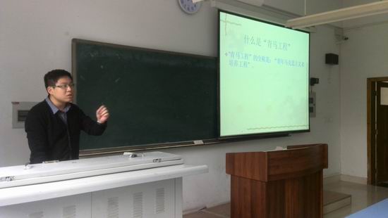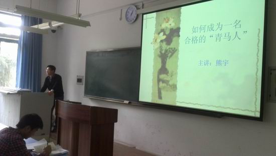 青马工程初级班于2013年3月13日中午1:00在弘德楼3101教室开设了主题为“如何成为一名合格的‘青马人’”的主题培训讲座,校团委熊宇老师担任主讲。