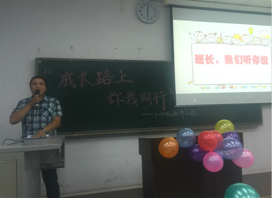 此次主题班会,学院在会前进行了充分的讨论,为此次主题班会奠定了“反思.分享.在路上”中心思想,制定了播放“点滴记录”视频、分享入学一年的收获以及制作心愿海报三个“规定动作”。班会伊始,各班播放了精心制作的班级同学自入校以来录制的成长记录视频,之后,各班邀请在过去一年中在学业、个人成长等方面卓有建树的同学上台分享了自己大学一年的收获与体会,分享自己寻找人生目标的心路历程。2014级软件工程班的李姝雨同学,分享了自己暑假参加英语培训、学习吉他、参加暑期社会实践的种种体会,展示了自己一年以来获得的各种证书和奖状,她以实际行动告诉班级同学,不要在迷茫中止步,人生的方向需要在行动中寻找。活动最后一个环节是各位同学展示自己制作的心愿海报,用自己寻找的图片贴出一份属于自己的愿景海报,去探寻自己内心深处对于未来人生的希望和目标。