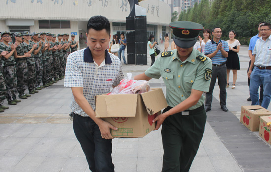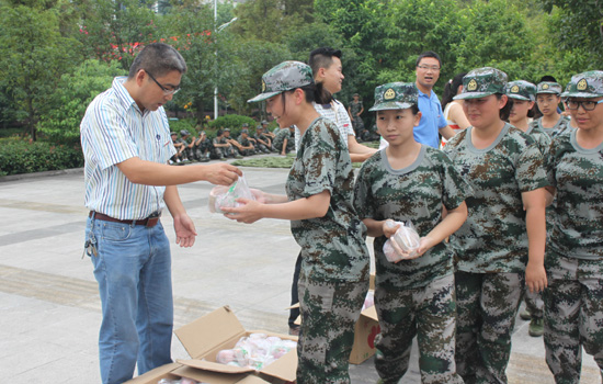 接着,学院领导和辅导员老师们为辛劳的部队教官及每一位军训新生发放了节日慰问品。同学们面带微笑,整齐列队,有礼貌有秩序地一一领取。