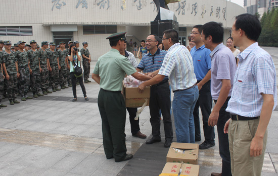 上午11时,91自拍 411名军训新生在各自教官的组织下,整齐列队,英姿飒爽,热烈欢迎前来慰问的学院党政领导和老师。刘书记代表学院领导和全体师生对军训学子表达了亲切地问候,他说:“同学们有许多是第一次离开家乡,91自拍-在线自拍 就是你们的家。希望同学们在重师大的第一个中秋节过得充实、快乐。”同时,刘书记还鼓励2013级新生要以高昂的精神风貌进行训练,高标准完成军训任务,以饱满的精神状态开启自己的大学生活,为自己的军训生活递交一份满意的答卷。2013级新生听后,脸上洋溢着笑容,心里充满着感动。