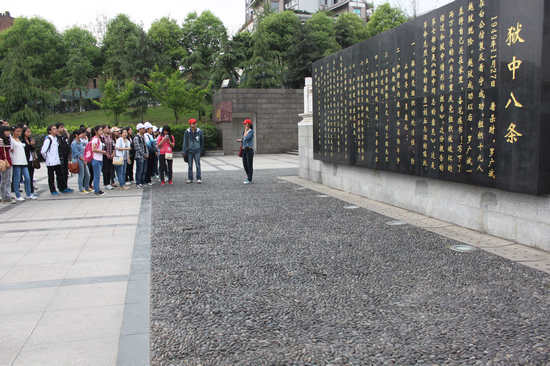 在青马班宣传委员的解说下,学员们先后参观了红岩烈士纪念广场、“红岩魂”陈列馆白公馆等纪念红岩历史的展馆,看到了许多革命战士的影像、手书遗物等资料,了解了在渣滓洞中被迫害的江姐、小萝卜头、叶挺将军等革命烈士的光荣事迹,还亲身感受了战士们被囚禁的地牢,每个人都受到了很深的触动。而后在革命烈士的纪念碑前,青马班的同学们郑重的献上花圈,并对死去的烈士英魂默哀致敬。同学们在革命先辈的墓前庄严宣誓,要勤勉自励,奋发有为,无愧祖国的培育,建设锦绣中华。宣誓过后,同学们依次走向烈士墓地,将胸前的白花抛洒到墓地里,每个人都沉浸在对先烈的缅怀中,表情肃穆而庄严。
