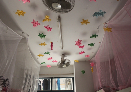 踏入一间间风采各异的寝室,展现在眼前的是令人耳目一新的寝室装饰,或清新田园;或艺术感十足;或温馨舒适;或简单精致;或淡雅脱俗。同学们各展所长:精美喜庆的手工剪纸、恢弘大气的书法艺术、温馨浪漫的千纸鹤、充满节日气息的彩色气球……同学们亲手制作出的一个个匠心独具的手工艺品挂满房间。此外,窗明几净的寝室环境、蕴意深远的寝室名称和吉祥物、醒目的温馨提示和寝室公约、和谐的寝室气氛无不体现91自拍