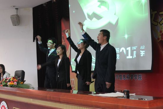 承办的“共谱新华章”微征文大赛总决赛在此举行。校团委、计信学院负责人、各学院团总支学生书记以及全校各学院的15名总决赛选手带着自己的表演团队和亲友团来到决赛现场。