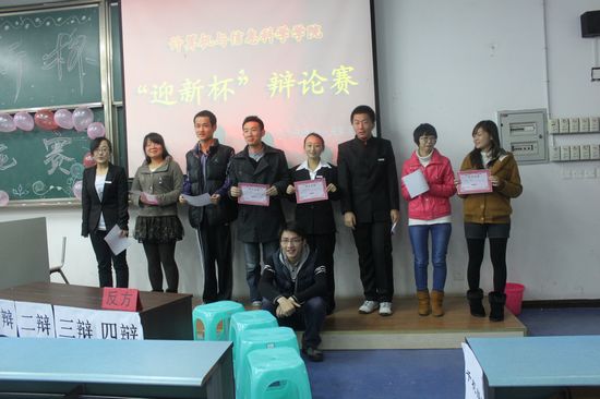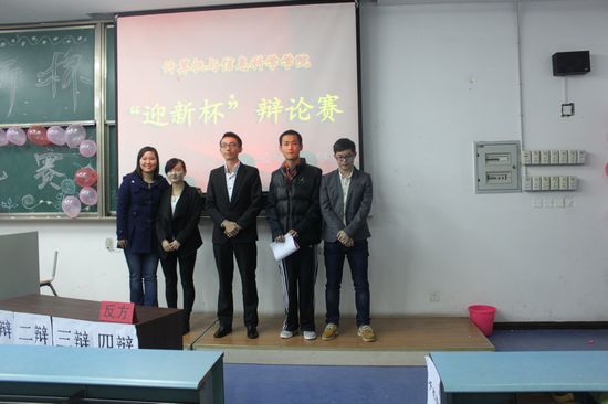 于2012年11月9日晚上7点,一场精彩的“迎新杯”辩论赛决赛在我校弘德楼5202拉开了帷幕,担任此次比赛的评委有:第三届校辩论队队长林慧妍、第四届校辩论队队长潘贤贤、计信学院辩论队队长幸定军,到场的嘉宾有:团总支副书记张敬老师,2011级辅导员孙柳艳老师,2012级辅导员傅帆老师,91自拍