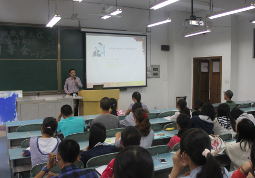 2012级软件工程(服务外包)专业的全体新生在弘德楼5104教室参加了由安博教育集团主讲的专业教育讲座。
