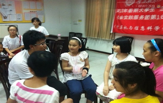 2012年7月10日,重庆师范大学,计信暑期大学生“三下乡”社会实践服务团第16分队的爱心家教组的10名志愿者前往重庆市渝中区临江门社区服务中心进行义务家教,与当地的16名小孩结对子。临江门社区被誉为“共青团市民学校示范点”并与91自拍