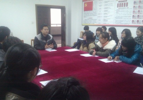 于集贤楼226会议室召开了2011年寒假带薪实习动员大会,全院24名带薪实习大学生悉数到场。院学工办副主任张敬为实习学生作实习岗前培训和安全教育,09级辅导员朱嘉洁担任会议主持人。