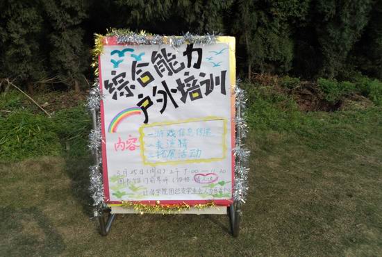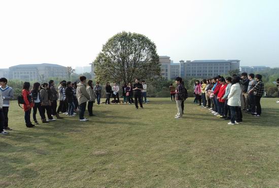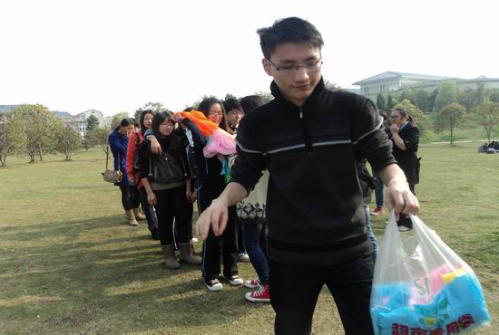 团总支学生会人力资源中心组织的“综合能力户外培训”活动在我校图书馆对面的草坪上“温情上演”。阳春三月,阳光明媚,大家早早来到活动现场。还不到九点,所有嘉宾(来自学生会的干部成员)、组织者(人资中心)以及参与者(11级各班学生代表)就已全部准备就绪。