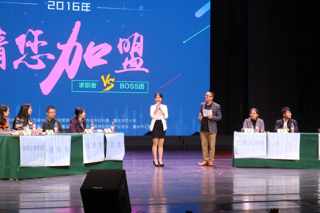 联合举办的重庆互联网和创意产业“请您加盟”大型职场活动在重庆师范大学校友会堂隆重举行。活动包括职场秀和大型专场双选会两个部分。